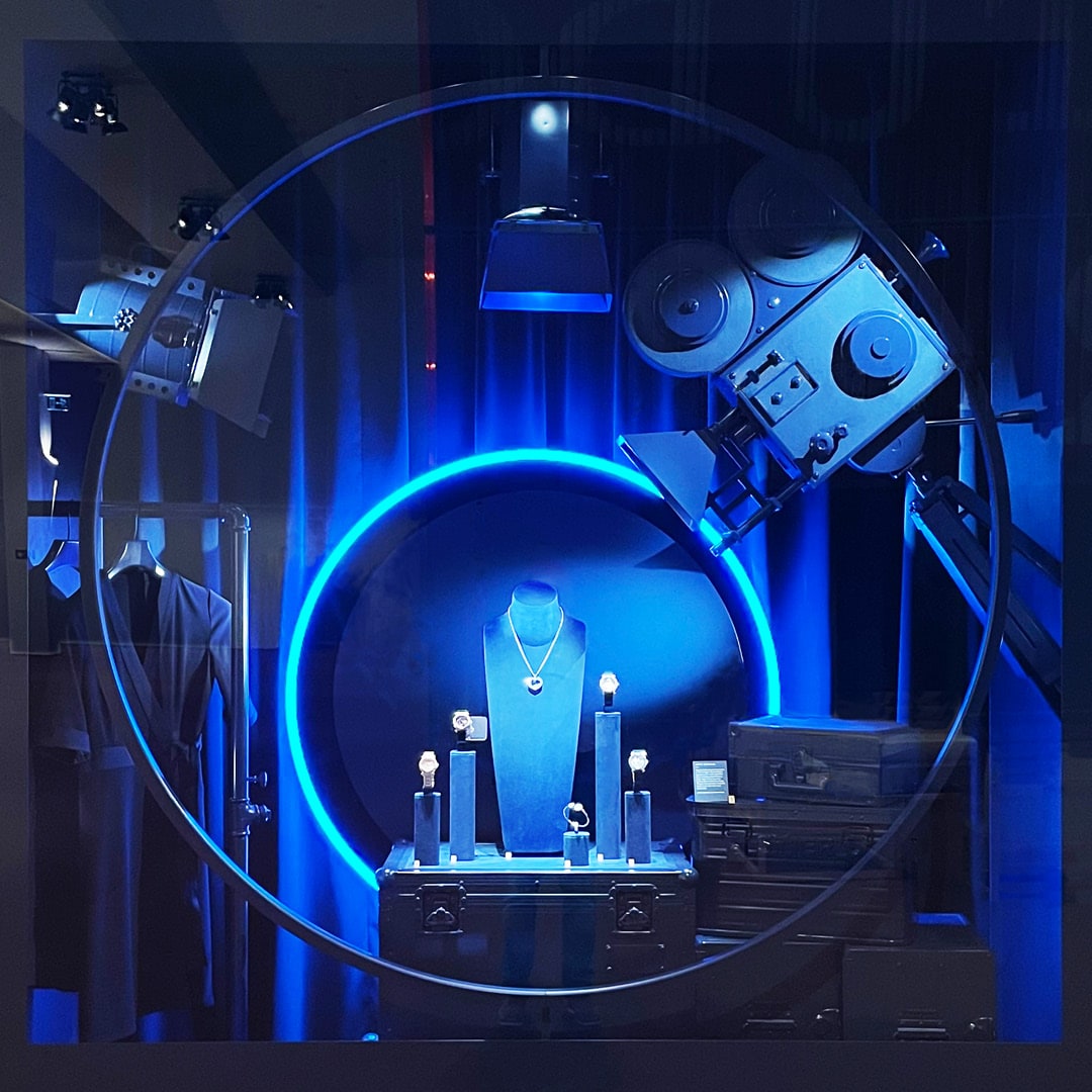 Réalisation des vitrines extérieures selon le concept pilot de la marque Zénith, avec un jeu de couleurs et de mises en scène sublimé par un éclairage minutieusement ajusté, assurant une mise en valeur optimale des garde-temps.