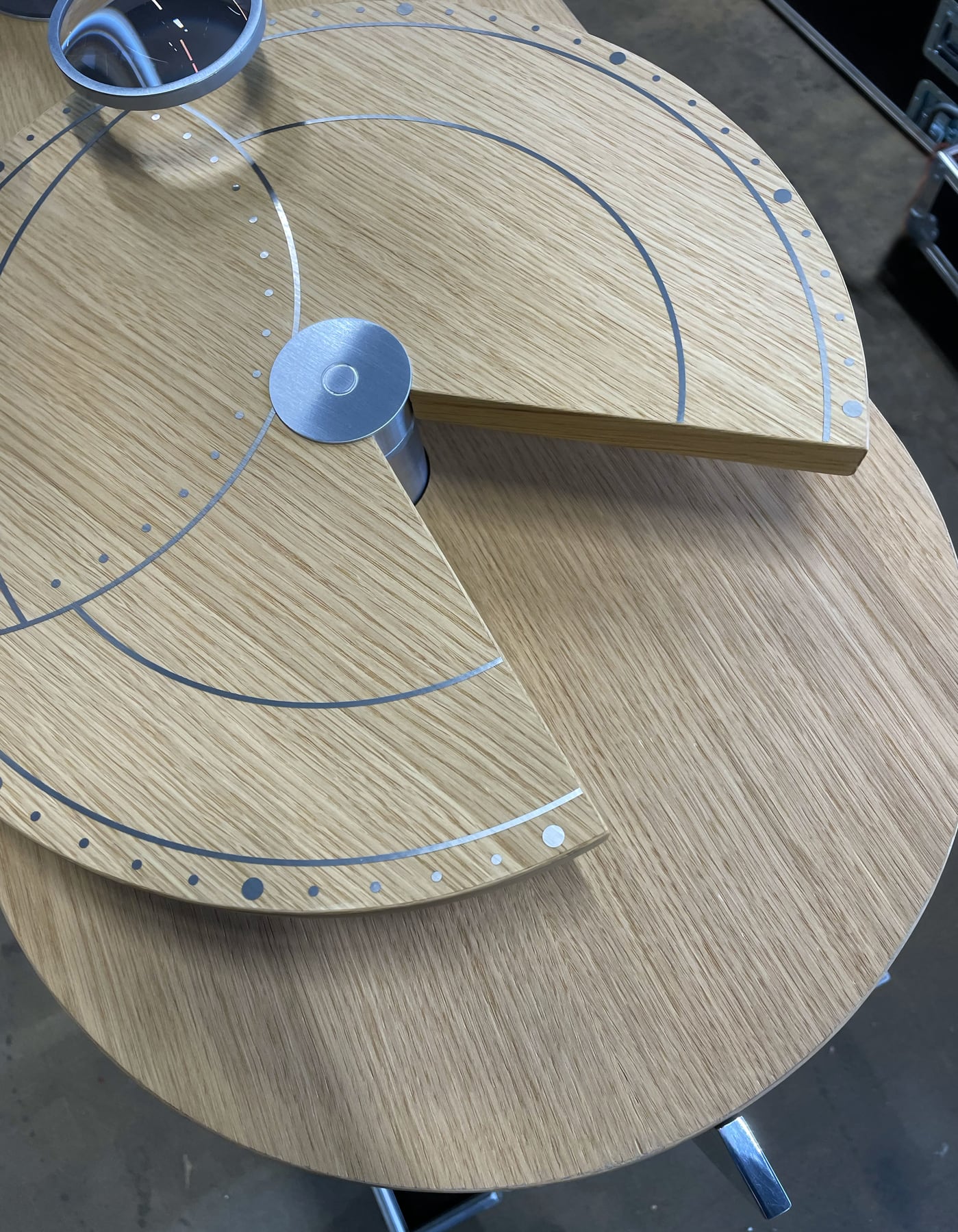 Bois naturel huilé, aluminium brossé fin et loupe antireflet recto/verso — un équilibre subtil entre matières nobles, précision et légèreté visuelle.