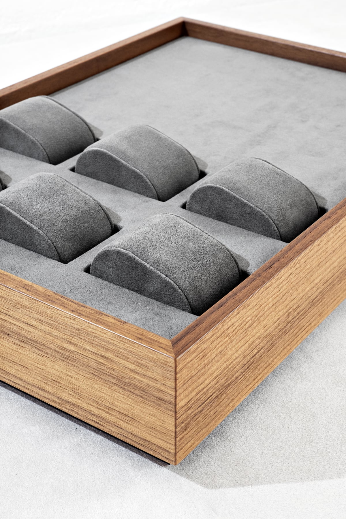 Leur design minimaliste permet de faire disparaître le support au profit de la création, laissant le bijou ou la montre occuper toute la lumière. Un travail de précision, alliant technicité, élégance et discrétion, au service de l’excellence artisanale.